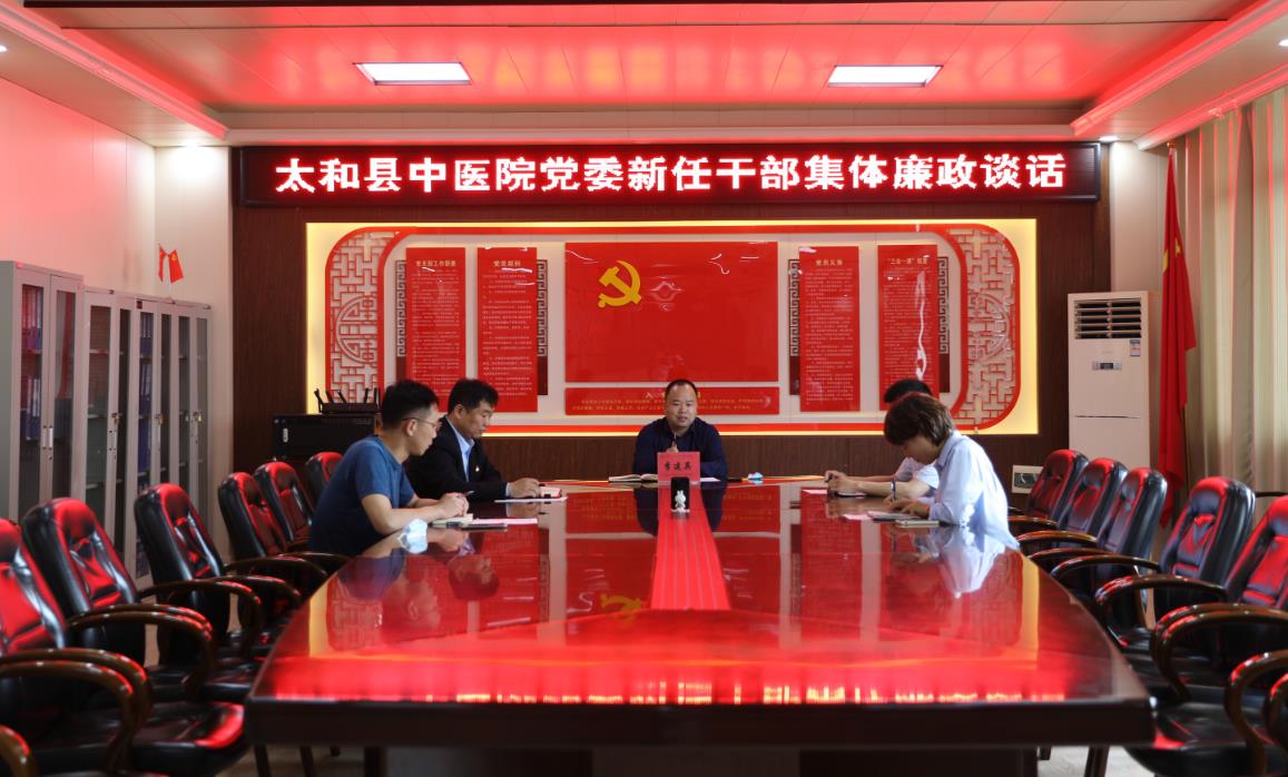 5月19日下午,太和县中医院党委书记李建英在党员活动中心主持召开中层干部任前集体廉政谈话会。党委办公室主任李灿章及杨春侠(视频形式)、张立峰、刘巍、梁英丽4位医院新任干部参加会议。