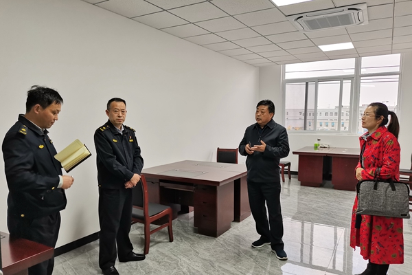 王道峰一行人参观了城管局办公场所的基本布局,从入门后的布置到党建资料的精心准备,都给出了富有建设性的意见建议。