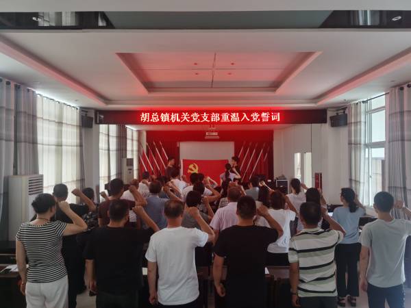 为庆祝中国共产党成立100周年,增强党员理想信念,提高党员党性修养,6月28日上午,胡总镇在镇三楼会议室举办镇直机关支部重温入党誓词仪式。镇直机关支部全体党员干部参加仪式。