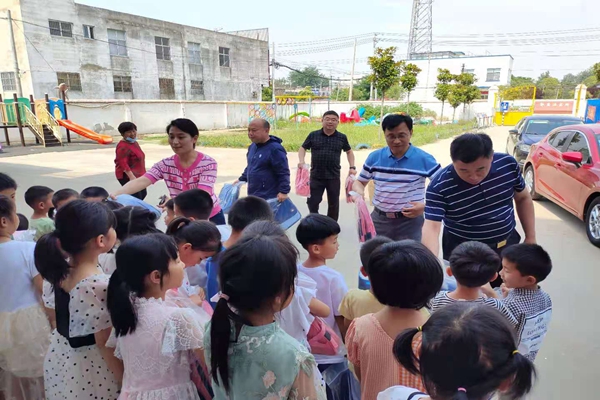 朱瑞华来到郭庙中心幼儿园慰问了留守儿童,给每一位学生送上了书包,祝他们“六一”儿童节快乐,并与学生们进行亲切的交谈,鼓励他们要勇于面对困难,好好学习,通过学习改变自己的命运,长大以后成为祖国的栋梁。