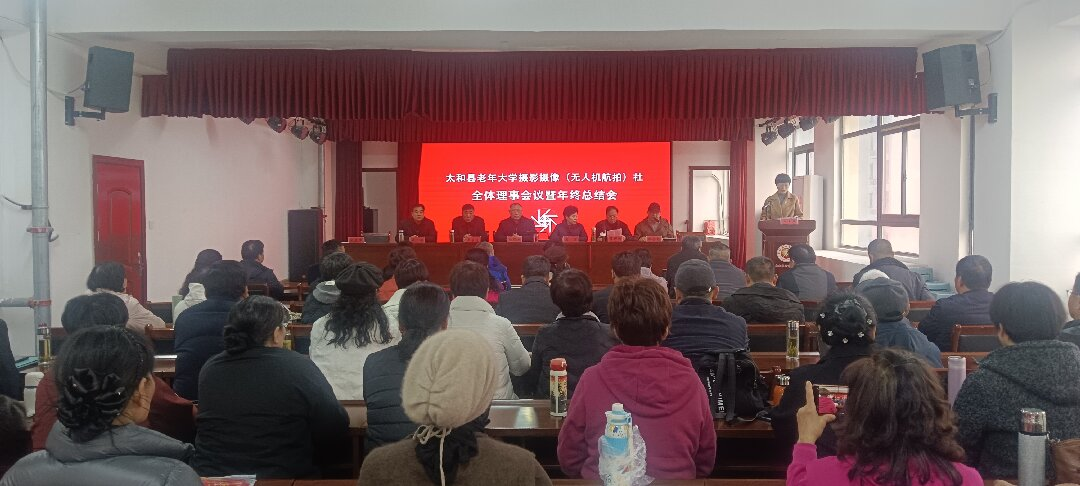 太和县老年大学摄影摄像(无人机航拍)社召开全体理事会议暨年终总结会12月11日顺利召开,太和县老年大学校长陆凤杰、副校长吴岩、王永先及校委会成员、社团理事及骨干学员代表齐聚一堂,共话航拍乐趣,总结年度成果,擘画发展新篇。
